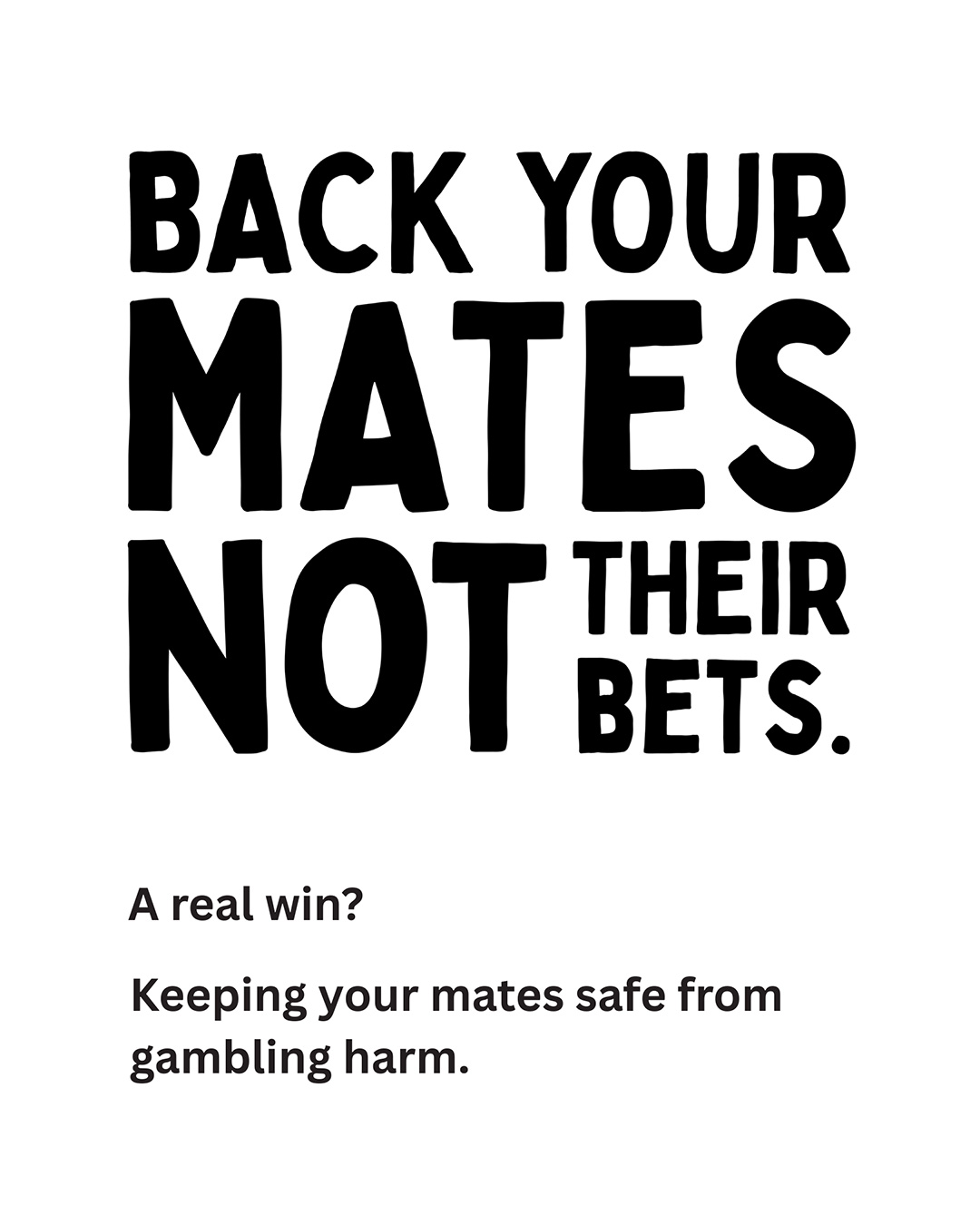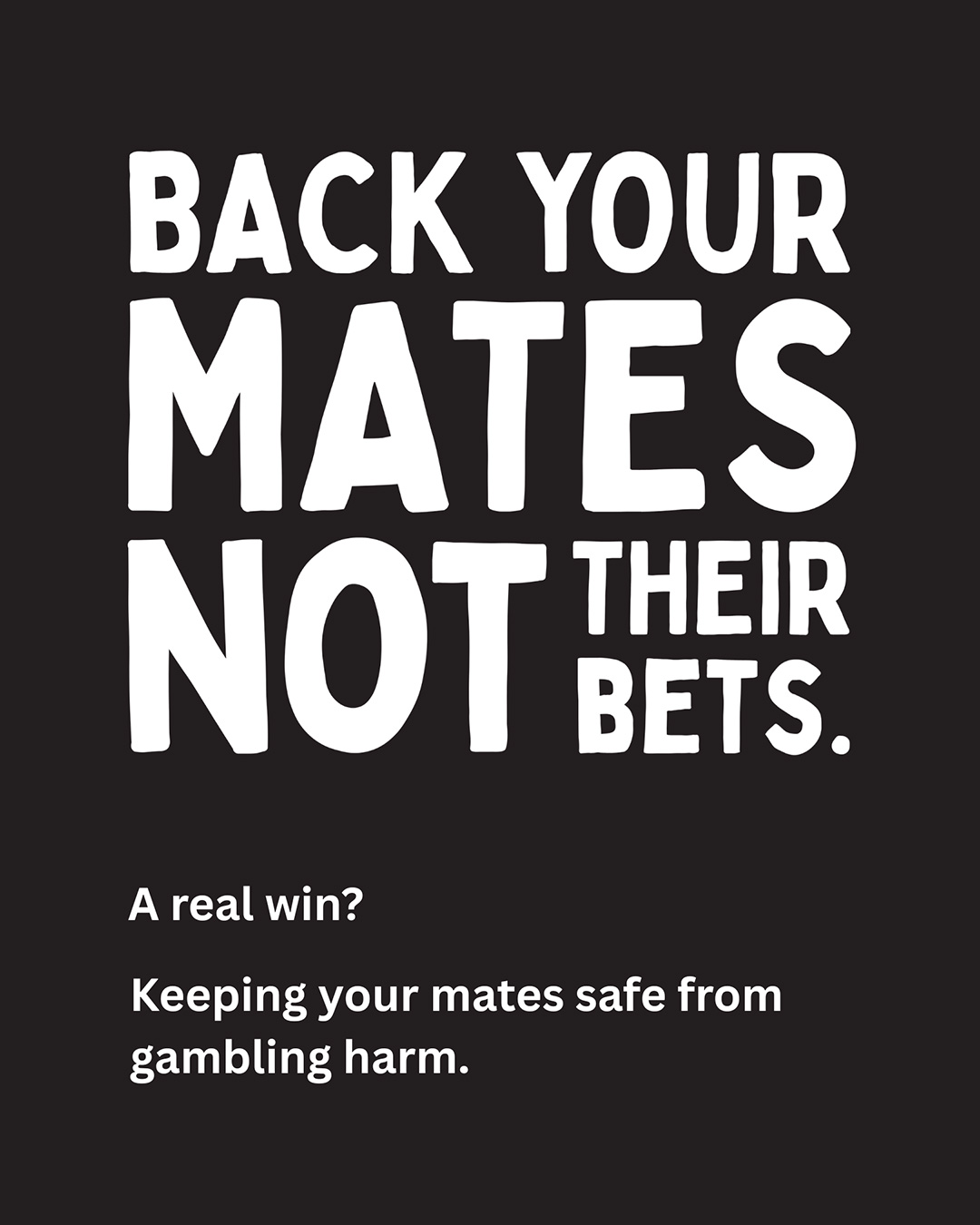 The Back Your Mates, Not Their Bets campaign aims to raise awareness about gambling harm and promotes positive peer supports.